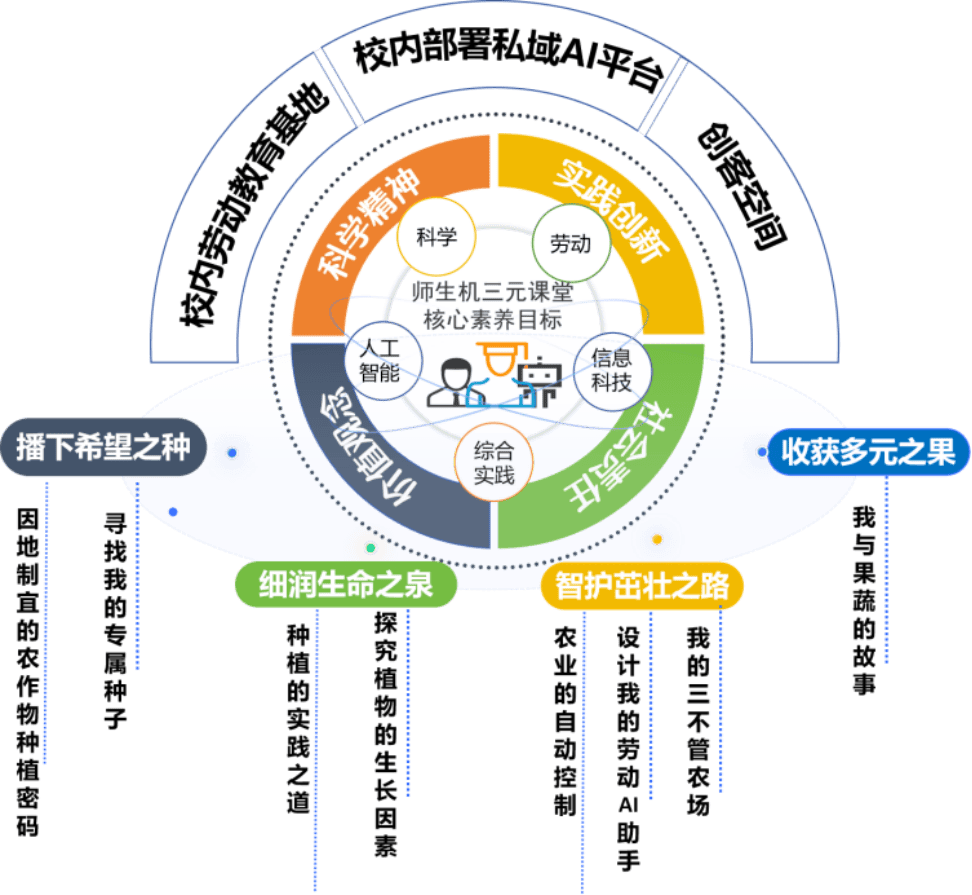 融合地舆、数学取科学学问。培育出一支兼具学科深耕能力取AI使用、课程设想能力的复合型教师团队。推进中小学(长儿园)“五育并举”、推进学生全面成长,让“将尝试搬进农场,构成了跨学段、跨学科、多部分联动的“全员全程协同”款式。从晚期创客空间取太空农场的扶植,帮力学生愈加自从地进行探究取创制?
